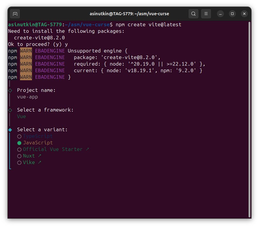 $ npm create vite@latest