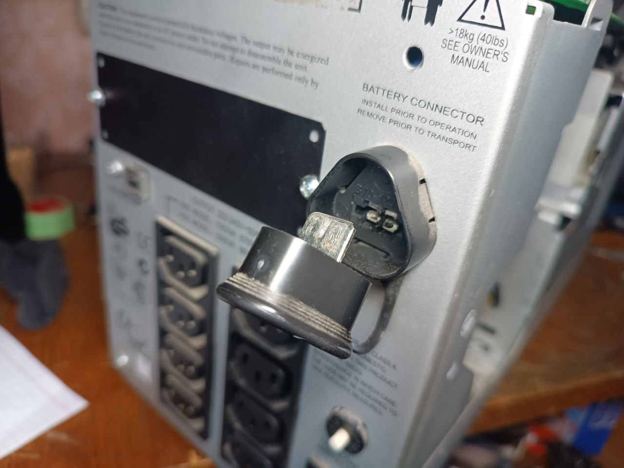 Неисправность выглядела так: бесперебойник включается, но через пару секунд загорается индикатор "перегрузка", устройство пищит, выключается, потом через несколько секунд снова включается, снова горит индикатор "перегрузка", писк и так по кругу.