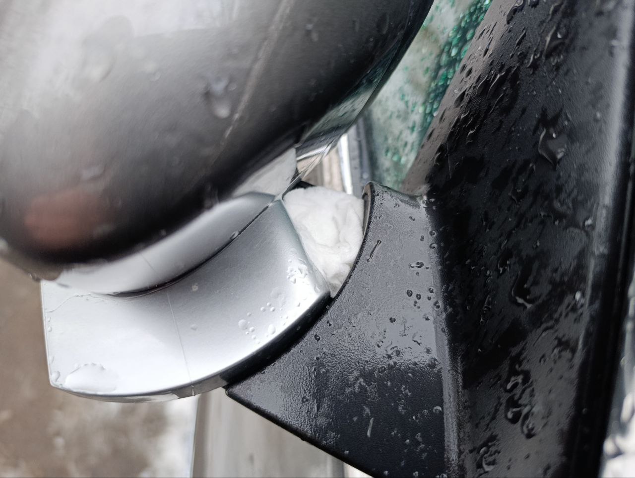 Спасает от этой напасти своевременная чистка зеркал от снега. Я также кладу ватный диск в полость, куда набивается снег. Затем заклейте свеху ватный диск кусочком скотча, что снижает риск накопления жидкости и льда в этом месте.