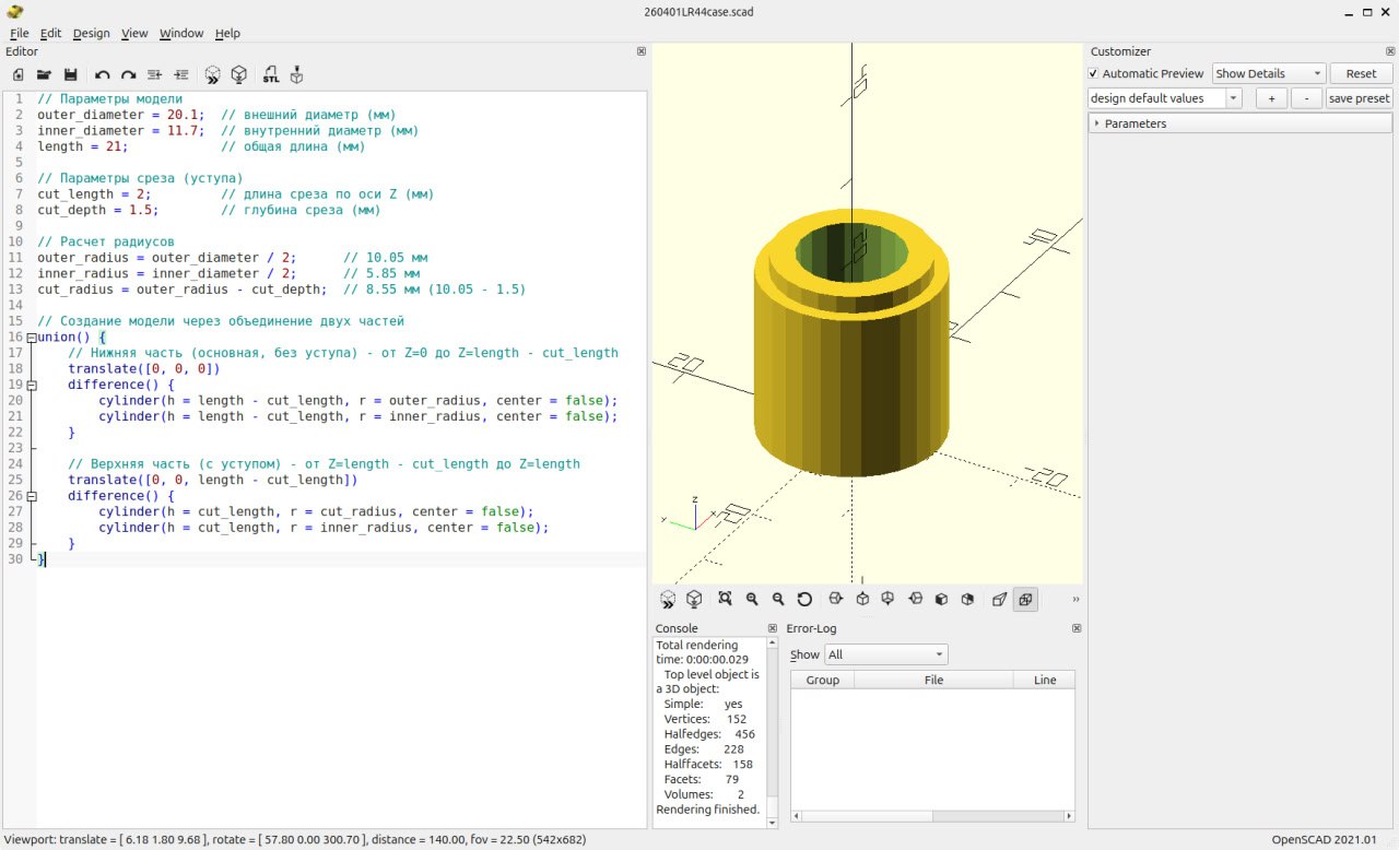 DeepSeek: вот обновленный код OpenSCAD с добавленным кольцевым срезом (уступом) на одном конце.