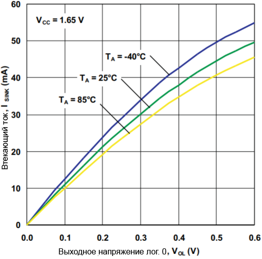 Диапазон выходного напряжения в состояниях лог. 0 или лог. 1(2)