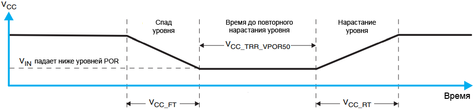 Чтобы правильно работал сброс по питанию, соблюдайте вышеперечисленные рекомендации по параметрам, показанные на рисунках 33-36 и в таблице 13.