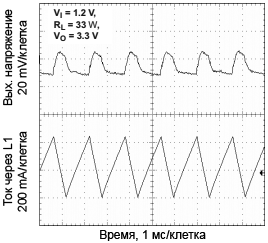 Например, для выходного тока 200 mA при 3.3V, через индуктивность будет течь как минимум средний ток 920 mA при минимальном входном напряжении 0.9V.