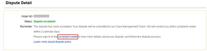 После того как Вы, как покупатель, выполните эскалацию спора, пожалуйста залогиньтесь в Complaint Center (центр жалоб) http://channel.alibaba.com/complaint или кликните View Details на страничке подробностей транзакции заказа, чтобы просмотреть последний результат/состояния этой жалобы. Есть 3 варианта, чтобы залогиниться в complaint center.