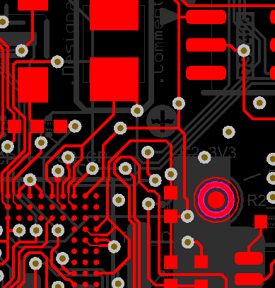 Понимание сложного дизайна PCB является непростым делом, когда сочетаются высокая плотность размещения компонентов, трудная разводка и несколько сигнальных слоев. AD имеет некоторое количество возможностей подсветки, чтобы помочь Вам проанализировать разводку. Чтобы включить подсветку цепи, сделайте клик на любой цепи с удержанием клавиши CTRL + Click, и все, что не является частью цепи, будет затенено, чтобы выделить разводку цепи на всех сигнальных слоях, как показано на рисунке ниже. Чтобы подсветить несколько цепей, удерживайте клавишу SHIFT, когда делаете клики через CTRL на каждой цепи. Кликните с клавишей CTRL на любом свободном пространстве, чтобы восстановить отображение без подсветки, или кликните на кнопку Clear в нижней правой части рабочего пространства.