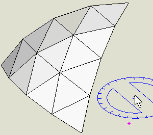 Если Вы используете SketchUp настолько долго, что уже познакомились с инструментом Транспортир (Protractor Tool), то Вы уже знаете, что транспортир автоматически ориентирует положение своего курсора так, чтобы лечь на поверхность имеющегося объекта, или на одну из трех основных плоскостей. Пока Вы уверены, что транспортир лежит как надо, выбор центра поворота и конечных точек поворота осуществляется просто. Руководство пользователя SketchUp кратко упоминает использование кнопки Shift при измерении углов инструментом Транспортир. Кнопка Shift блокирует круглый курсор транспортира в своем текущем положении. Пока кнопка Shift удерживается нажатой, Транспортир можно перемещать в любое место чертежа, без изменения его ориентации на попадающиеся плоскости. Поэтому использование Shift позволяет удостовериться, что Транспортир ориентирован на ту плоскость измерения угла, которая действительно нужна.