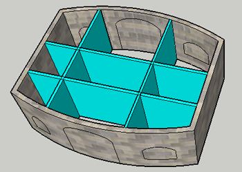 Первый пример покажет Intersect Selected (пересечение выбранного). Предположим, нужно построить нечто, показанное на рисунке - стены из камня и внутренние перегородки голубого цвета.