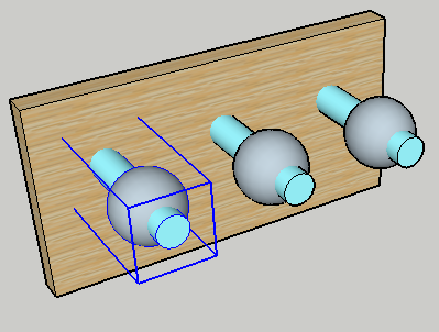 Теперь в вычисления попадут только объекты внутри компонента. Так, будут созданы только срезы между сферой и цилиндром, и конец колышка останется нетронутым. Конечно же, Вы получите тот же самый результат, если колышек является не компонентом, а группой.