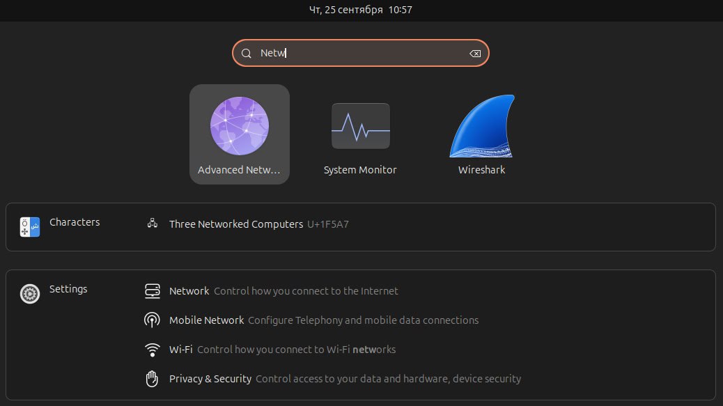 a. Запустите приложение Network Connections вводом "Network" в обзоре активностей, и кликните на иконку "Advanced Networking".