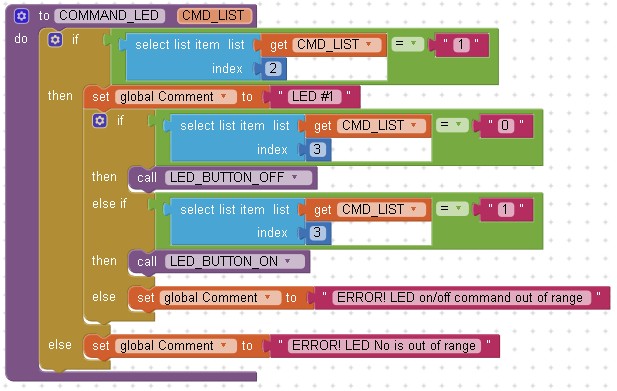 COMMAND_LED это новая процедура, она обрабатывает только команды LED. Сначала она проверяет номер LED (второй элемент массива):