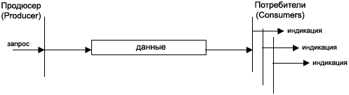 6.3.3. Взаимодействие Producer/Consumer - модель Pull/Push. Это взаимосвязь типа генератор/потребитель, что вовлекает один генератор (продюсер) и потребителей, которых может 0 или больше. Модель push (проталкивание) характеризуется не подтверждаемой службой, которая запрашивается продюсером. Модель pull (выборка) характеризуется подтверждаемой службой, запрашиваемой потребителем.