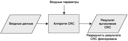 1.1. Алгоритм вычисления CRC. Как показано на рис. 1, алгоритм CRC получает на входе данные, и генерирует фиксированный код контрольной суммы в зависимости от входных параметров.