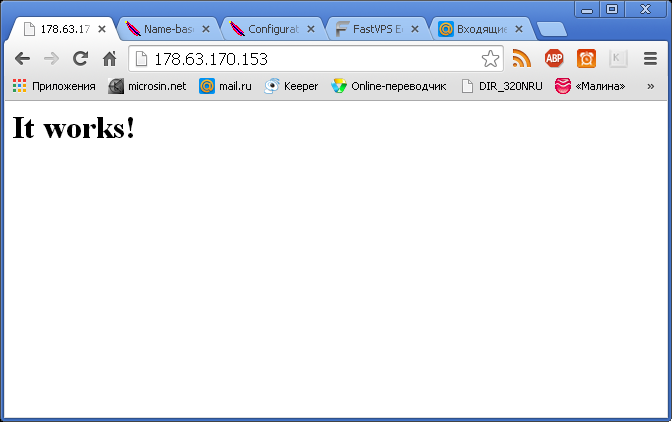 Другими словами, если Вы видите сообщение "It works!", значит что-то не так с конфигурацией сервера Apache.