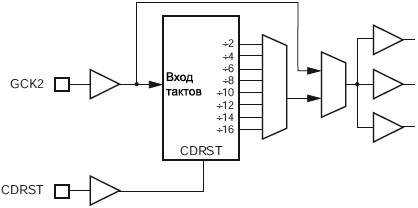 - Быстрое программирование в системе ISP (in system programming). Интерфейс 1.8V ISP реализован на основе IEEE 1532 (JTAG). - Переконфигурирование на лету (On-The-Fly Reconfiguration, OTF). - Тестирование схем по стандарту IEEE1149.1 JTAG Boundary Scan. - Опция включения триггера Шмитта на входе (для каждого вывода ножки порта). - Во всех устройствах имеется несколько банков ввода/вывода (I/O banks). - Непревзойденные параметры эффективности по низкому потреблению энергии (внешний сигнал управления DataGATE). - Гибкие режимы тактирования: · Опция тактирования триггеров по обоим перепадам (DualEDGE). · Делитель тактовой частоты (на 2, 4, 6, 8, 10, 12, 14, 16). · Технология CoolCLOCK. - Опции глобального сигнала с управлением макрочейкой. · Несколько глобальных сигналов тактов на макроячейку с выбором фазы. · Несколько глобальных сигналов разрешения выхода. · Сигналы глобальной установки/сброса. - Обилие тактов для блоков p-term, сигналов разрешения выходов и сигналов установки/сброса. - Эффективное управление тактами термов, сигналами разрешения выхода и установки сброса для каждой макроячейки, и общими между функциональными блоками. - Продвинутая защита прошивки. - Опция выхода с открытым коллектором для монтажного ИЛИ и управления светодиодами. - Опции выбора на ножках I/O функций удержания шины (bus-hold), сигнала с тремя состояниями или слабой верхней подтяжки (weak pullup). - Опция конфигурирования подключения к земле не используемых ножек I/O. - Можно использовать смешанные напряжения I/O, совместимые с уровнями логики 1.5V, 1.8V, 2.5V и 3.3V для всех устройств. - SSTL2_1, SSTL3_1 и HSTL_1 на устройствах с емкостью от 128 макроячеек и выше. - Поддержка горячего подключения.